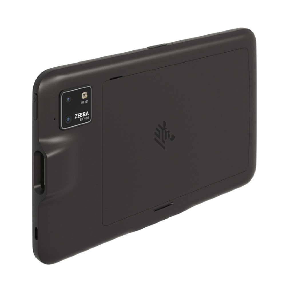 -ZEBRA ET401 portable tablet with Android 14, 2D SR500 scanner and 8.4" touchscreen. Bluetooth and Wi-Fi 7 + 5G connectivity. 2 GHz processor, 6 GB RAM and 64 GB Flash memory. 6100 mAh battery with front and rear cameras. IP68 certified.